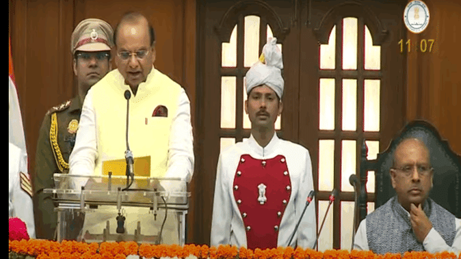 नई दिल्ली : उपराज्यपाल के अभिषाषण के शुरू होते ही आम आदमी पार्टी के विधायकों ने मुख्यमंत्री और मंत्रियों के कार्यालय से भीमराव अंबेडकर की फोटो हटाने का विरोध करना शुरू किया।